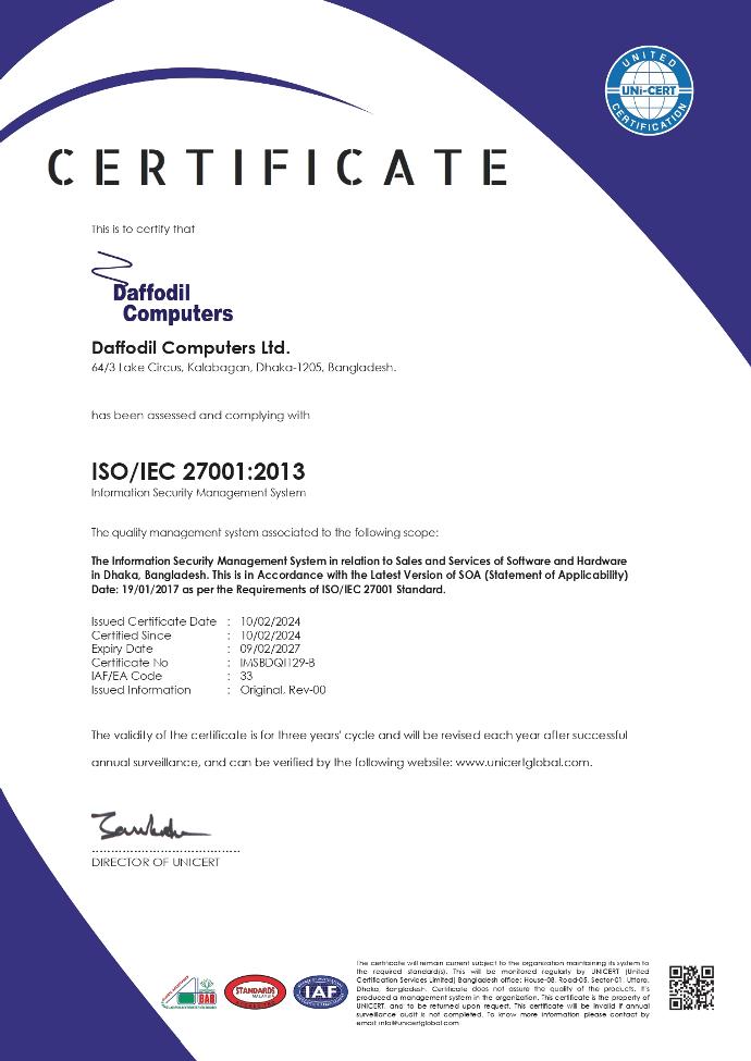 All the staffs and employees of daffodilPC (A division of Daffodil Computers PLC.) are being advised to work hard and meticulously to effectively implement and maintain the Quality Management System within the organization.